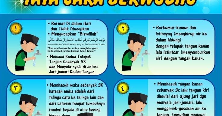 Tata cara berwudhu, tayamum, sholat wajib, sholat jenazah, dan mandi junub подробнее. Selesai berwudhu disunatkan membaca doa sambil menengadah ke kiblat, dan mengangkat kedua belah tangannya. Cara wudhu yang benar dari awal hingga akhir. Tentu saja harus dipelajari sejak dini supaya terbiasa hingga dewasa kelak mengenai tata cara wudhu yang benar, sesuai dengan syariat islam. Berikut beberapa cara berwudhu dengan benar yang harus diterapkan tanpa ada kesalahan atau kekeliruan.